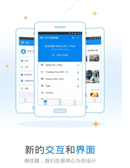 2、免费WiFi一键即可连接;精准测速让您快人一步;全网热点抢先知晓。