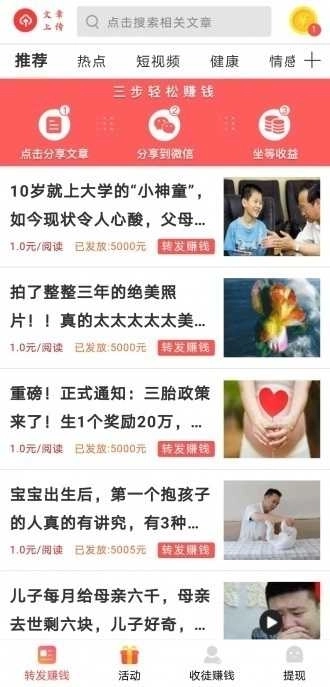 这是一款能让用户通过阅读和转发新闻资讯来轻松赚取收益的平台。