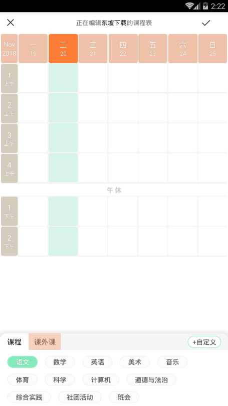2、创建新的课表,手动录入校内或校外课程,为孩子定制一份专属的课程表;