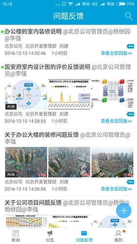 1.借助平台能够实时掌握项目最新资讯,发布或接收工作动态指令,知晓任务推进情况