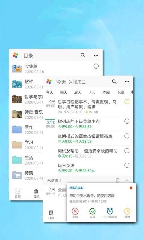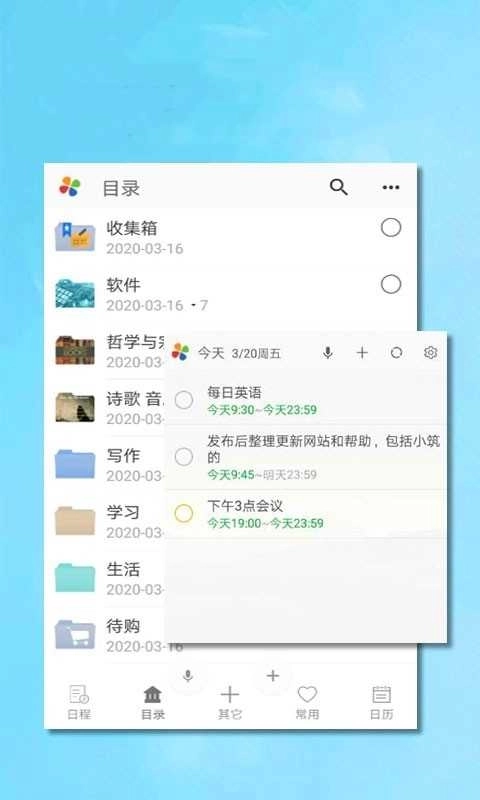 6、搜索功能,能够直接依据关键词检索你所记录的全部笔记、日程等内容;
