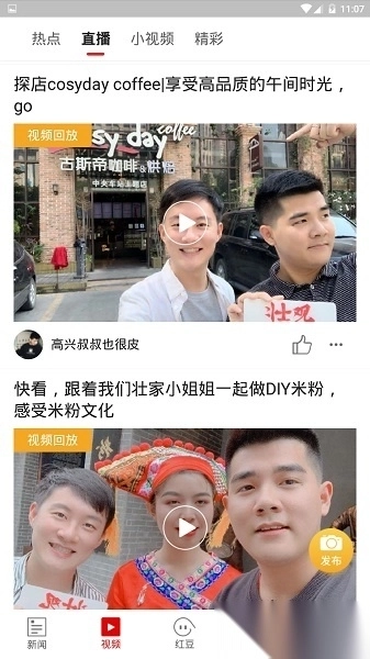6. 红豆:内容按照热门、南宁等四个频道分类展示。
