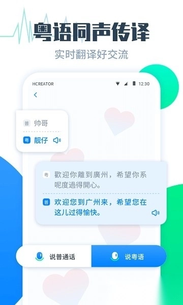 2、语音翻译:依托智能识别技术,可实现粤语与普通话的便捷互译,支持整句翻译及真人发音;课程内容涵盖日常交流、工作商务、旅行外出、校园生活等多种场景。
