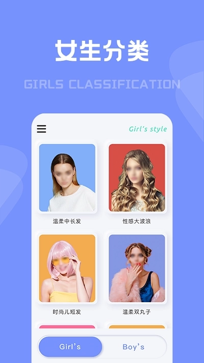 1、迅速启动软件并进入主界面,浏览女孩页面里展示的各类女孩发型