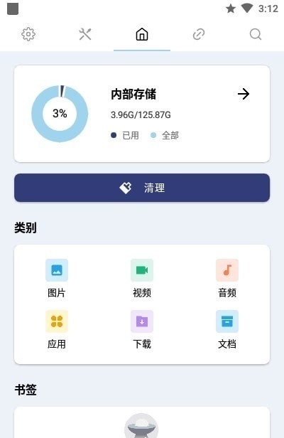 在主页上,您可以按不同类型直接查看设备里的文件,像图片、视频、应用程序、存档等都包含在内。