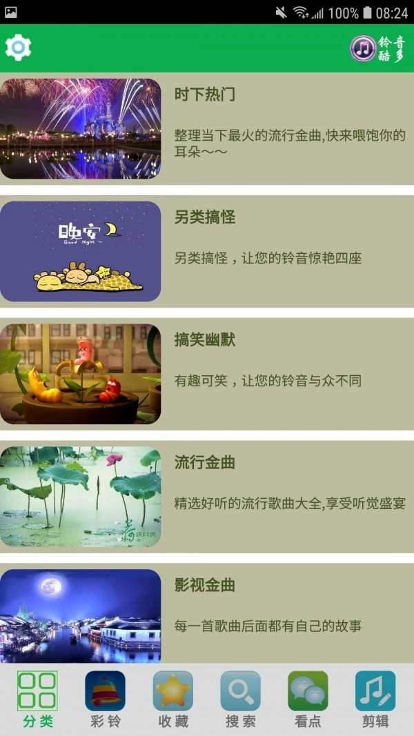 3、清新、方便的界面设计可以为用户带来非常极致的铃声音频内容。