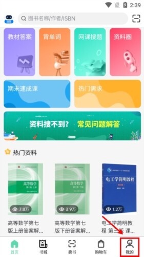 1、从首页向上滑动到最底部,就能进入“二手教材”专区,平台上有各类二手图书资源可供选择。