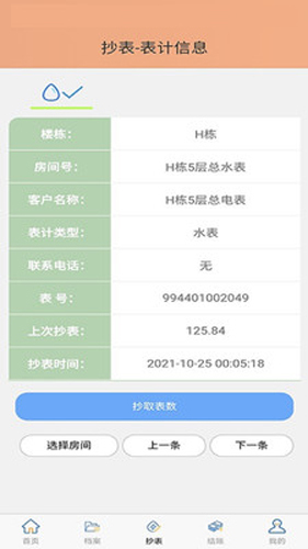 4、具备详尽的抄表相关信息,涵盖地址、楼栋、房间号、表具编号、上次抄表度数以及抄表时间等内容。