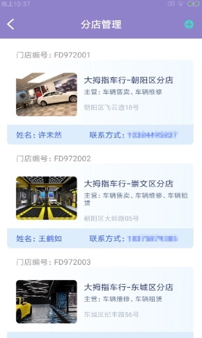 2、用户可在此处查看详细的门店编号及管理人员的具体信息。