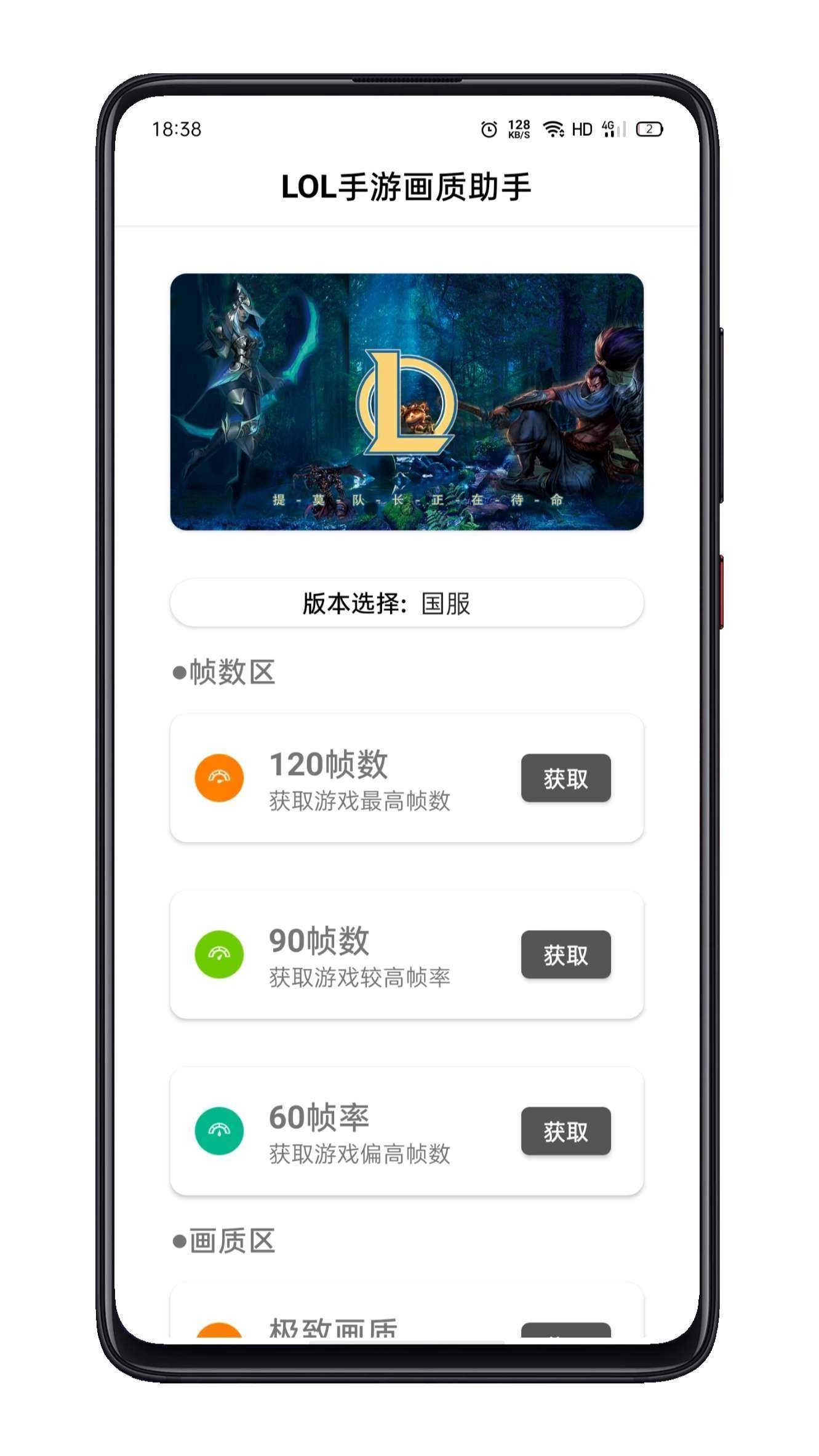 lol画质助手,这是一款专为英雄联盟玩家打造的画质优化工具,多种优化模式,玩家可依据自身手机性能选择合适的画质与帧率设置,从而提升游戏体验,欢迎有需要的玩家前来体验!