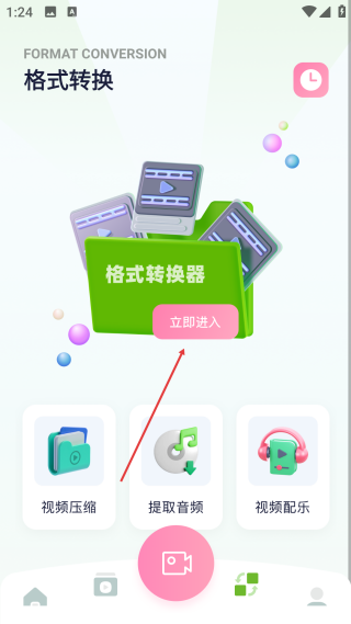 2、在格式转换页面,点击【立即进入】选项,进入视频素材选择操作页面。