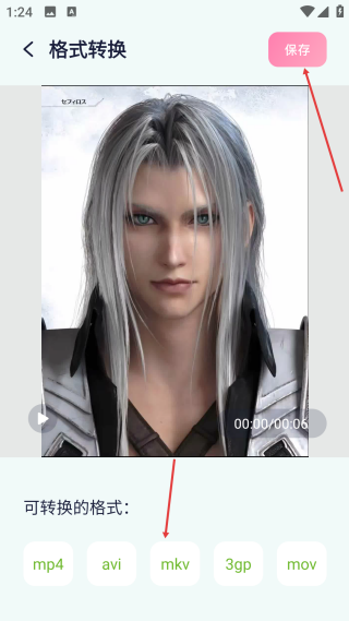 4、进入格式转换页面后,先选择好【目标格式】,接着点击【保存】按钮,这样就能完成视频格式的转换操作了。