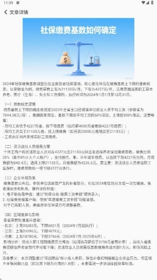 1、针对社保基数调整事宜,该功能可迅速且精准地将各地最新的调整动态推送给用户。