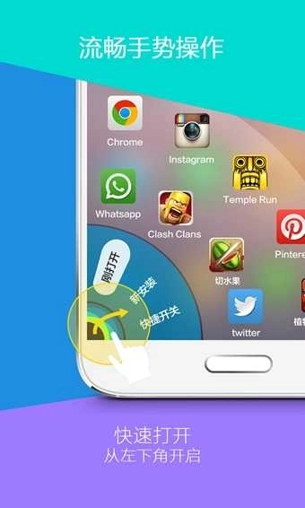 【Hola光晕】:从屏幕右下方或左下方朝屏幕正中间滑动,奇妙的Hola光晕就会出现。无论是全新安装后的初次使用,还是日常最常见的操作场景,像开关网络、开启强光手电、启动照相功能……你绝对想象不到它的响应速度有多快!