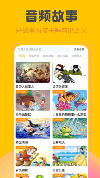 2、操作便捷:操作简单易上手,不管是儿童还是成人,都能轻松点击完成故事的播放、收藏与分享。