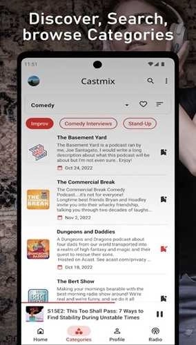 收音机:Castmix助您发掘新鲜音乐。您能收听自己钟爱的在线广播电台,还能依据流派或关键词开展搜索。要是您不清楚该听些什么,不妨浏览海量的广播电台目录。