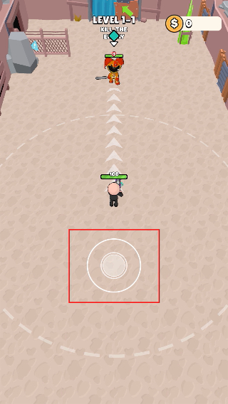 1、进入关卡后,操控角色移动到目标区域,借助【操控按钮】调整位置以靠近敌人。