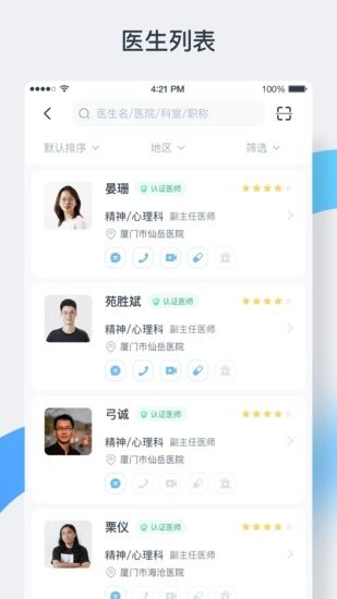 这是一款专注于心理与精神科领域的医患咨询及诊疗专业平台,核心功能涵盖线上问诊、快速开药、知识科普、测评量表四大模块。在线上问诊模块中,支持预约图文问诊、语音问诊、视频问诊以及线下问诊这四种不同的问诊模式。