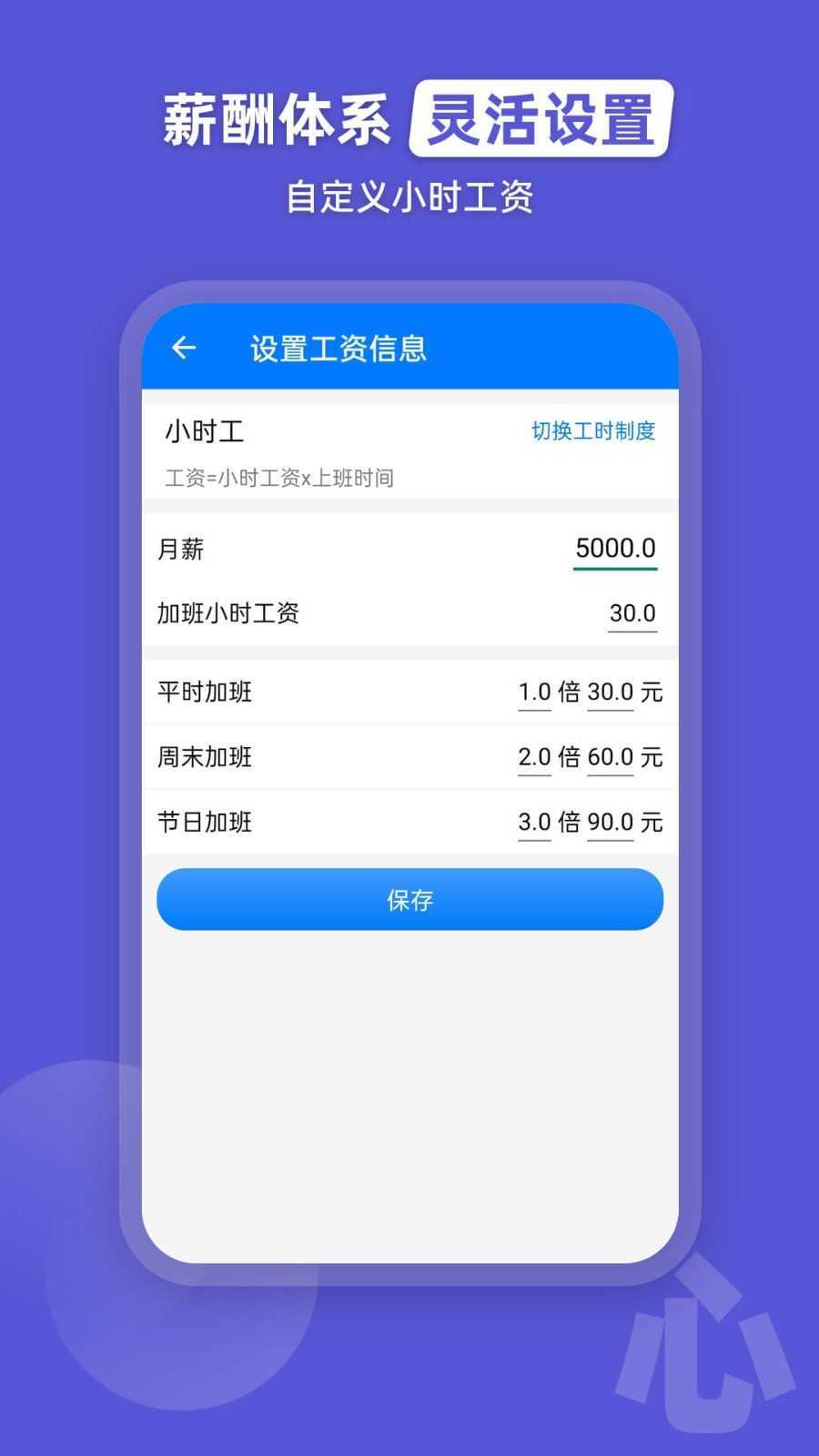 安安心心记加班是一款能在手机上记录工时的软件,用户可以自定义工资制度,界面设计简洁明了。这款软件支持加班工时的实时记录,用起来十分方便,有需要的朋友可别错过,快来体验吧!