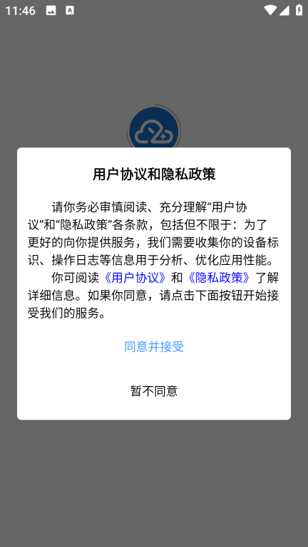 1、先安装该软件并将其打开,随后点击同意并接受相关条款,即可进入软件的登录界面;