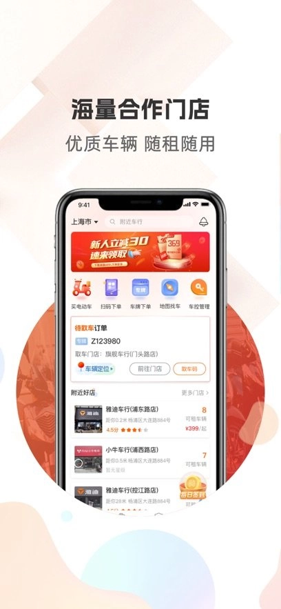1、一键租车——线上挑选,线下即骑