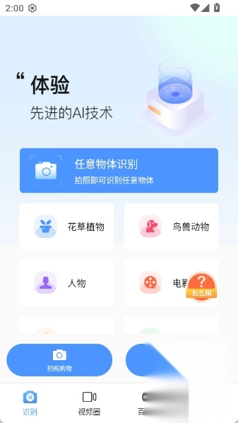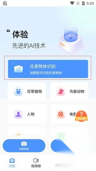 1.打开百科扫描王,点击“任意物体识别”。
