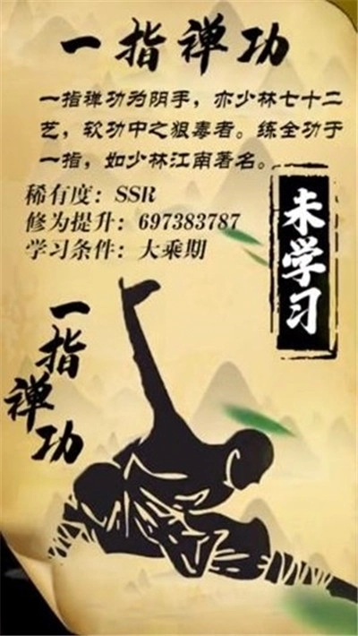 3、游戏采用挂机式玩法,不会占用玩家太多时间,只需放置角色学习武功,就能一步步成长为一代大侠。