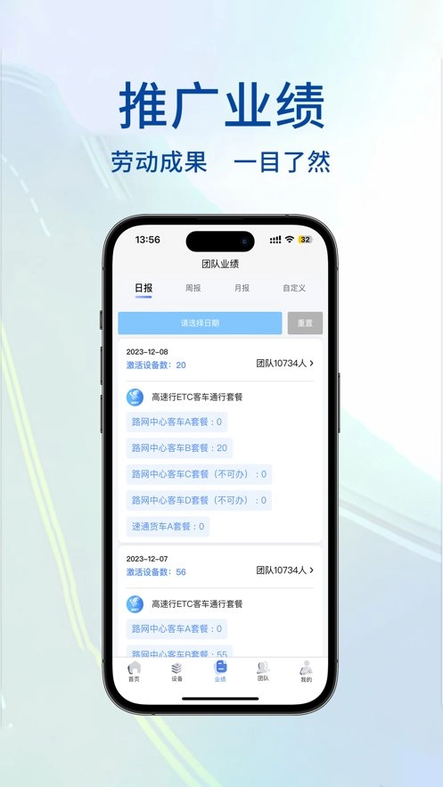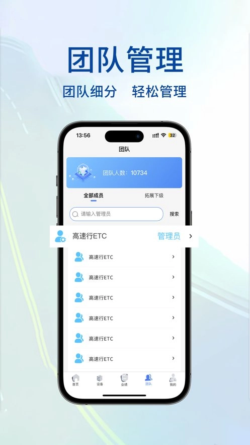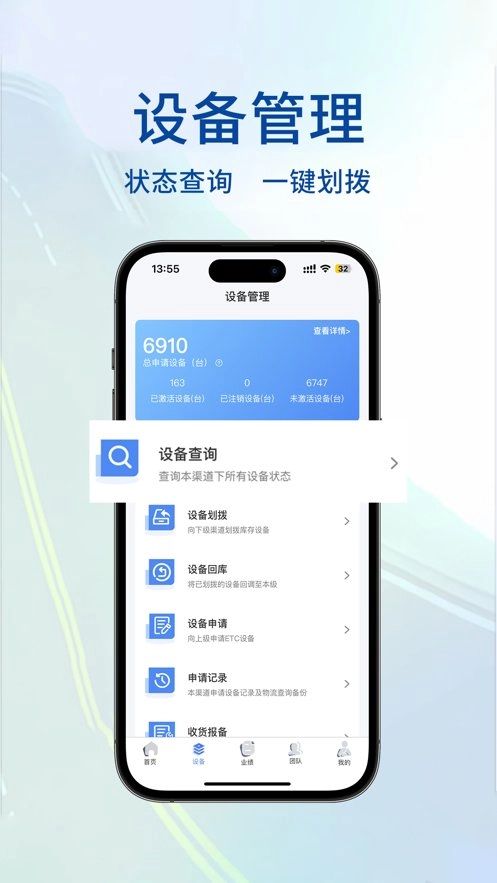 高速行ETC业务端包含客车ETC办理、货车ETC办理,个人及单位ETC办理,二次激活,库存管理、团队管理,业绩查询等功能。