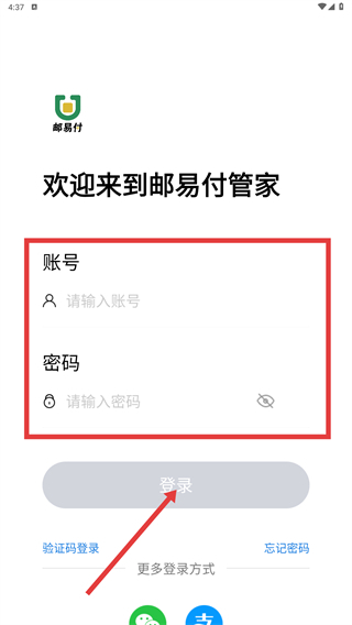 在登录页面,用户能够选择通过账号密码进行登录:先填写好账号和密码,然后点击【登录】按钮即可。