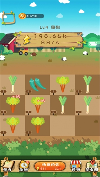 1、游戏开始时仅提供少数几种农作物种子,玩家需通过种植与培育使其健康生长,待成熟后将其售卖以获取收益;