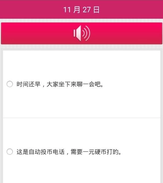 每日一题:每天更新一句日常生活中常用的粤语,通过听语音来辨别句子内容。