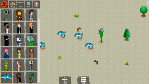 2、生物创造系统,能够通过组合各类像素部件来设计奇特生物,并为其赋予简单的行为模式,玩起来相当有意思。