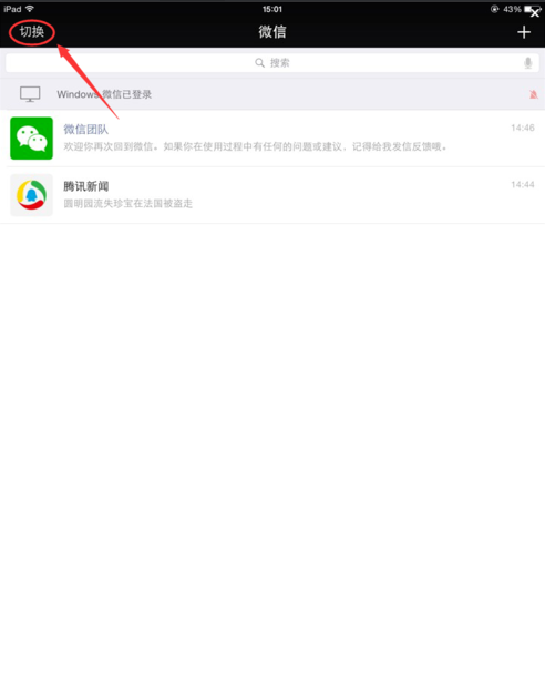 3、进入微信界面,微信左上角会出现“切换”按钮。