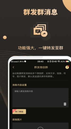 微商助手是一款相当专业的微商服务软件,用户能够免费使用其中各类编辑小工具来处理图片,它还具备快速群发消息、自动验证、自动评论等功能,清理效果也十分出色,助力你成为一名独具特色的微商。