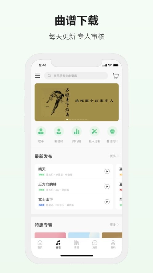 - 这里拥有许多的曲谱内容,用户在线就可以曲谱了