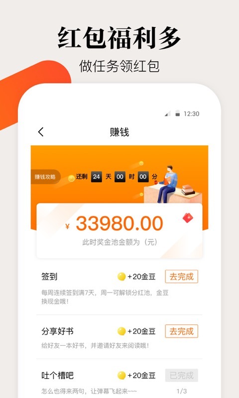 咕噜小说平台提供免费看小说的服务,还会依据你阅读小说的数量发放红包奖励。既能打发空闲时间,又能顺便赚点小钱,娱乐赚钱两不误,这种好事可别错过!平台上的小说都是精选的优质作品,全程免费阅读,阅读体验也十分流畅舒适,快来体验一下吧!