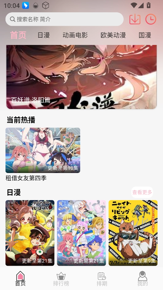 2、首页设有热门推荐板块,排行榜展示高人气佳作,排期功能便于用户了解更新动态,整体板块布局合理清晰,能让大家快速定位并找到心仪的动漫资源。