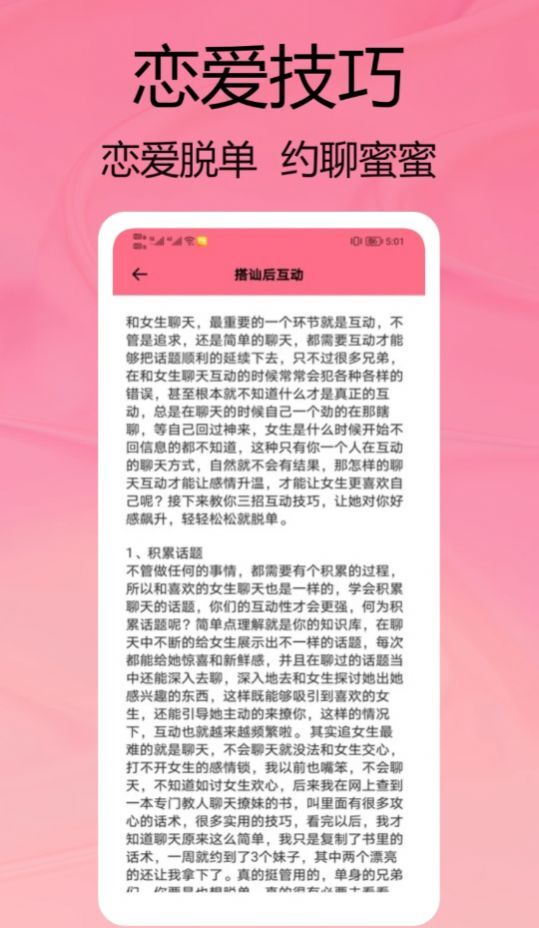 2、一款能帮你从恋爱小白进阶到恋爱达人,更妥善处理恋爱关系的软件;