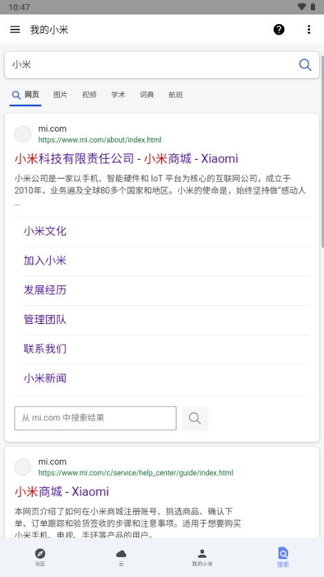 5、直接搜索感兴趣的小米产品或信息。