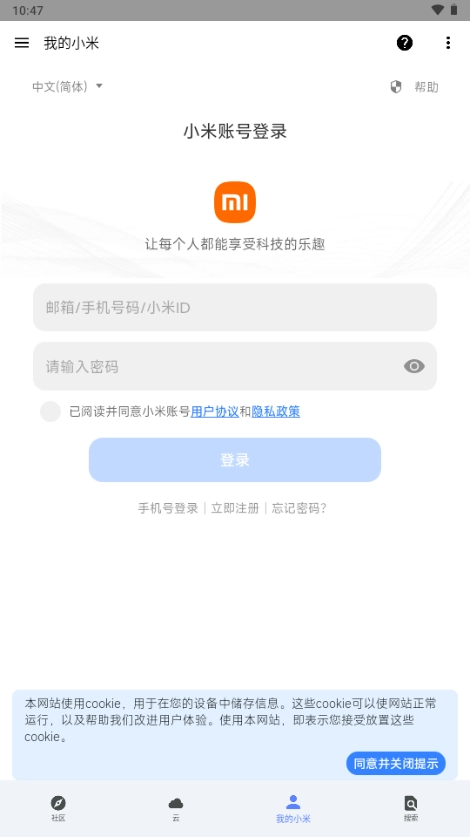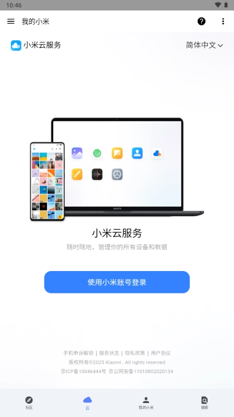 在云服务界面进行手机号验证时,滑块可能会与界面的滑动切换功能产生冲突,导致无法顺利完成验证。此时,可以直接跳转到小米云服务,完成验证后退出即可。