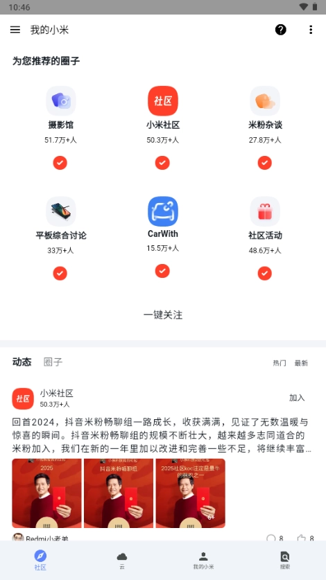 2、进入我的小米后,可以看到各种小米圈子。