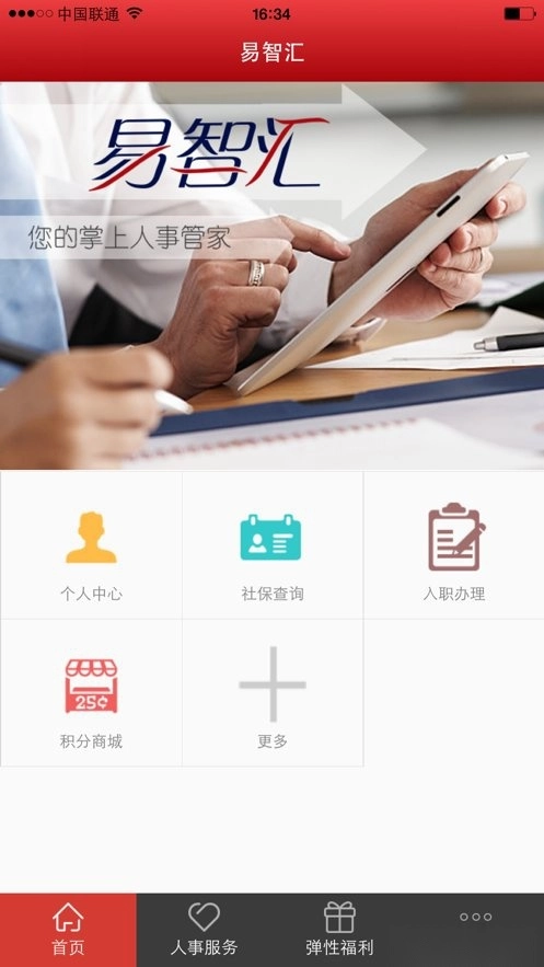 这是一个一站式人力资源服务的掌上应用平台,业务领域覆盖人事服务、健康管理、弹性福利等,为注册用户及其所服务的员工提供在线人力资源服务。