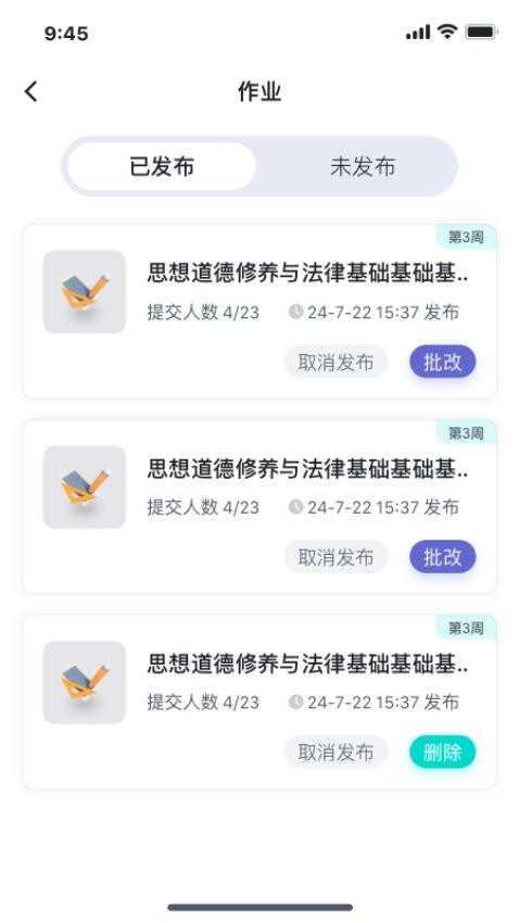 在应用内即可完成作业发布,便于学生及时开展练习,还能直接进行批改。