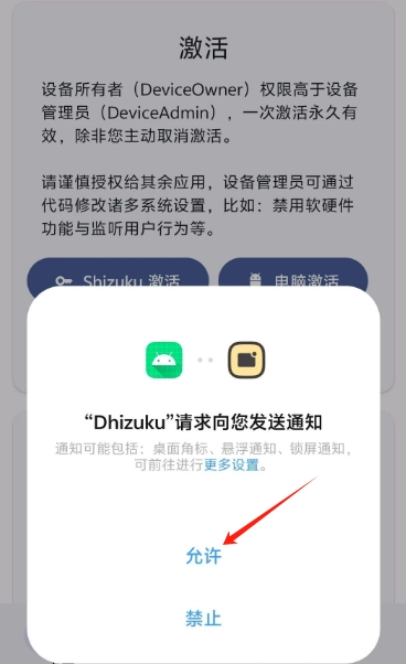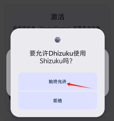3.此时点Shizuku激活。这时候会弹出Shizuku授权窗口。我们点击允许