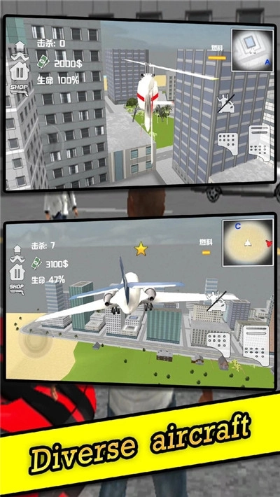 更有直升飞机,战斗机制霸城市高空!