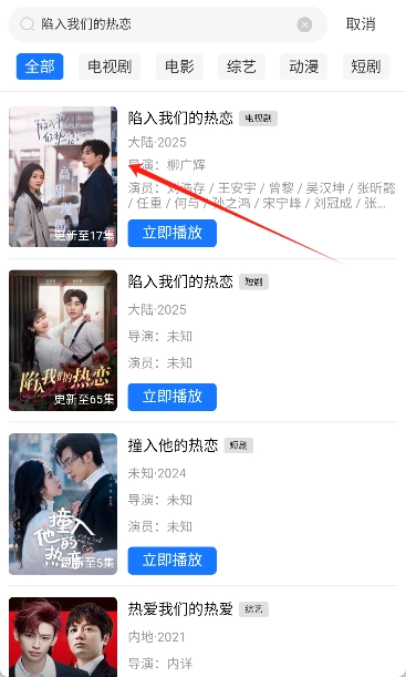 3. 点击搜索结果中的视频,进入播放界面中。
