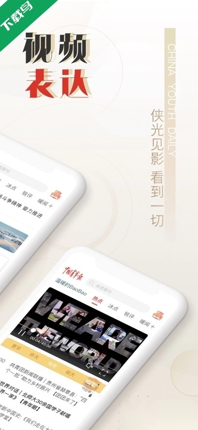 2、视频呈现:汇集青蜂侠短视频、我看见长视频及中青抖音等视频栏目,实现新闻内容视频化表达;同时通过中青号向用户提供制作工具,鼓励创作更多视频内容。