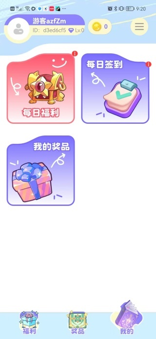 3、在个人中心页面里,设有每日福利、每日签到以及我的奖品等各类不同的内容板块;
