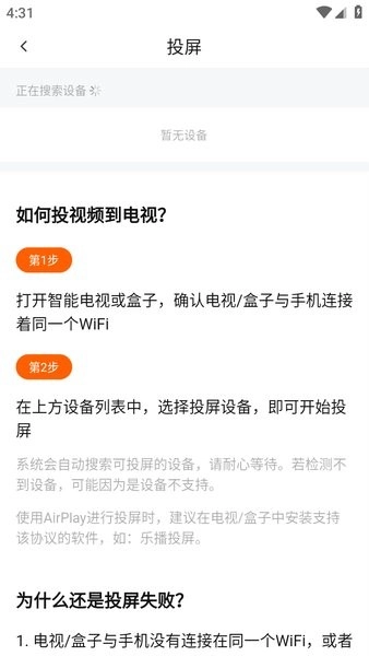正在搜索设备,搜索到了以后,选择电视,就可以开始投屏了。