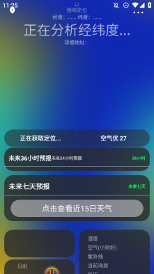 2、当定位成功获取后,系统就会展示出该地区的实时天气状况。
